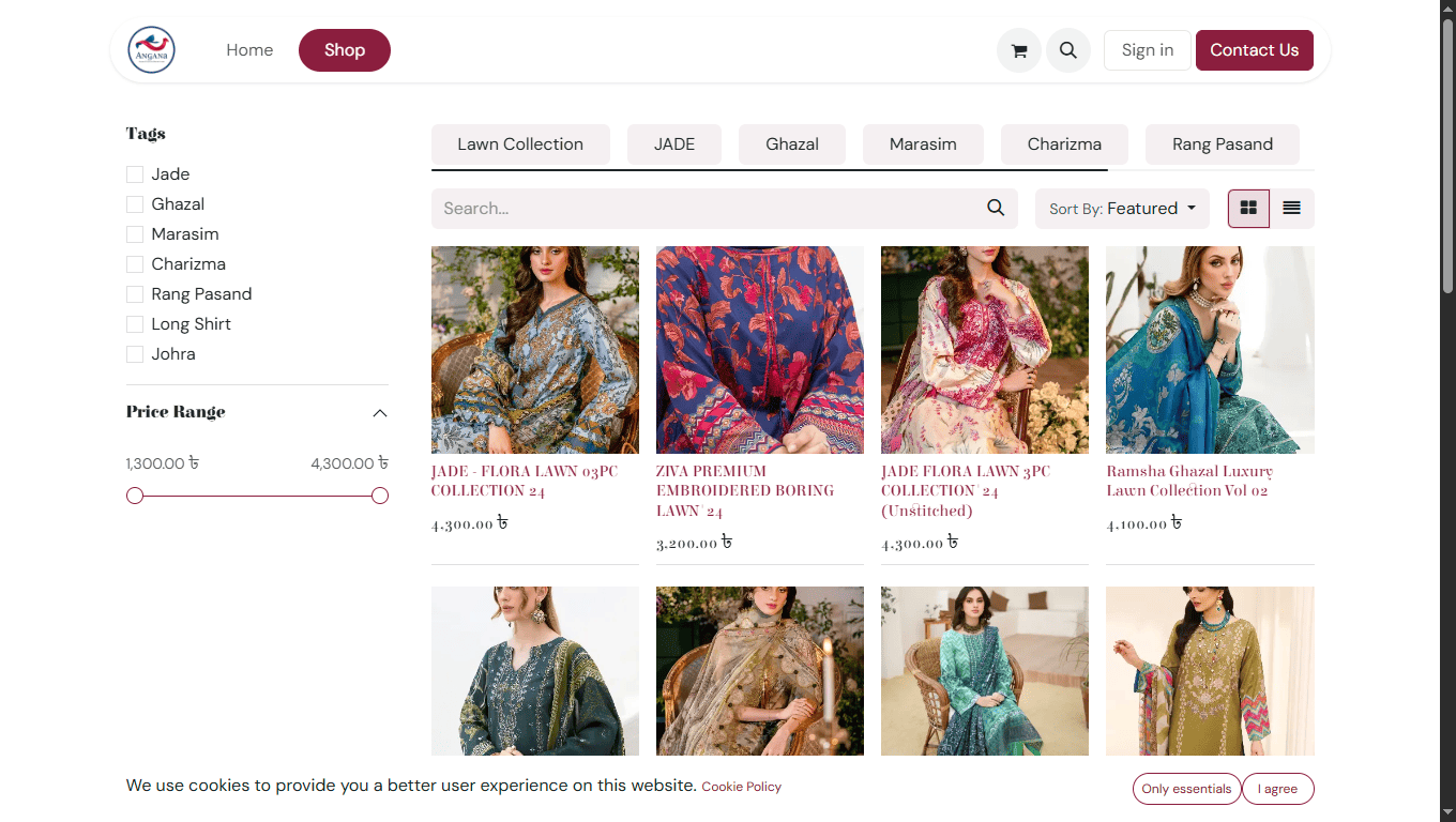 This e-commerce platform was developed on Odoo online to facilitate the expansion of Angana, an online clothing business. The site's customization was primarily executed using the Odoo Studio code editor.